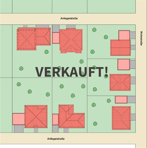 Bebaubar mit: freistehenden Bungalows, Satteldachhäusern und Stadtvillen