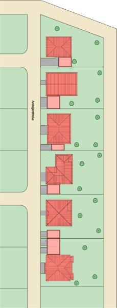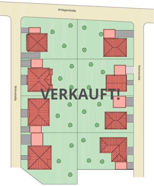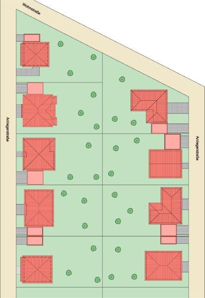 Bebaubar mit freistehenden Bungalows, Satteldachhäusern und Stadtvillen